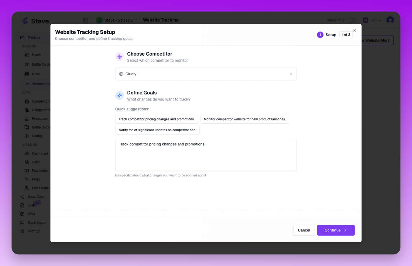 Congratulations! You've completed the Steve onboarding. Your competitive intelligence platform is fully configured and ready to help your team win more deals.